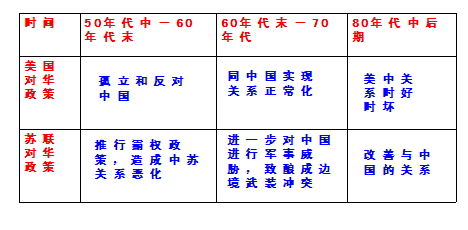 思考2:在争霸的三个阶段中美苏对中国的政策有什么样的变化?
