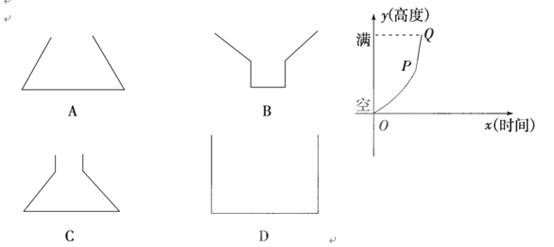 7、有一空容器,由悬在它上方的一根水管均匀地注水,直至把容器注满,在注水过程中水面的高度变化曲线如图所示,其中PQ为一线段,则与此图相对应的容器的形状是( )