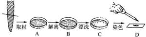 20、洋葱根尖细胞有丝分裂装片的制作步骤大致如下图:
