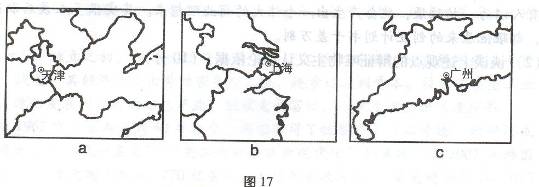 (2)概括图17所示三个地区地理位置的共同特征,并分析其对发展经济带来的优势区位条件。