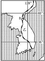 答案 (1)乙(朝鲜)(2分) 乙半岛跨经纬度范围较大 (2)台湾海峡 朝鲜海峡 (3)沿海地势平坦;位于海湾,水深避风;陆上交通配合较好,经济腹地广阔(其它答案只要言之有理可酌情给分)