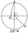 解析:由图中的135°W经线及CD为日界线可知,该图的中心点为南极点;由AB是晨线且A、B的经度差为90°可知,最外的大圆为赤道。故该图表示南半球全图。