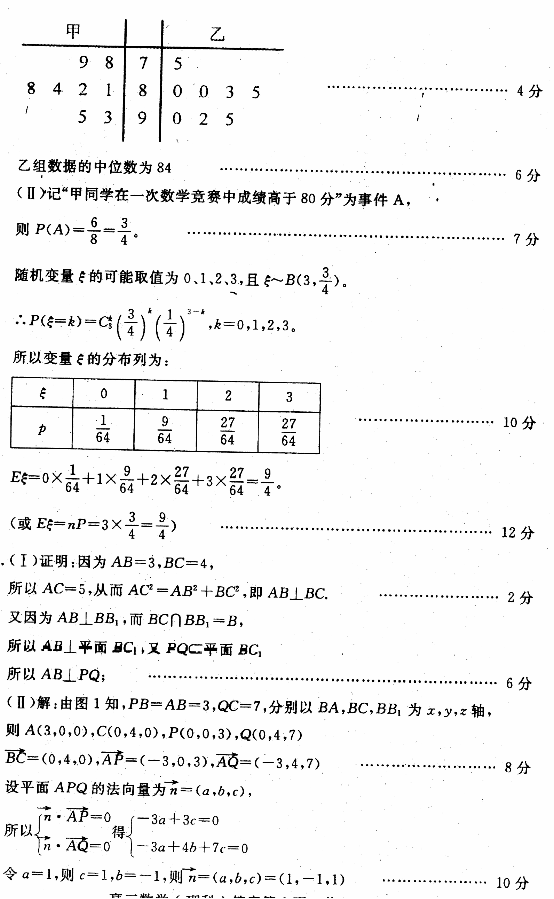 (I)用茎叶图表示这两组数据,并写出乙组数据的中位数;![]()