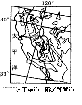 (2)图中A 、B两地同属灌溉农业区,但A地的主要灌溉水源是 , B地的主要灌溉水源是 ;由于长期采用 的不合理灌溉方式,加之气候 等原因,使两区域的土地产生了严重的 现象。