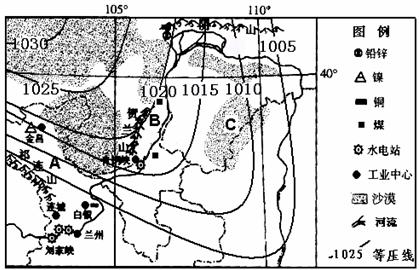(4)图中A 、B两地应优先发展的工业部门分别是 工业和 工业,两地发展工业的主要区位因素有何异同?