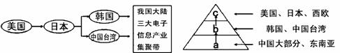 (08扬州四调)图1是“我国承接全球IT产业转移的路径图”,图2是“IT全球化竞争的金字塔模型示意图”,读图完成4-5题。