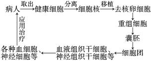 10.(2010·南京质检)Ⅰ.克隆羊“多利”的问世,很快在全世界引发了一场大讨论,其中关于“治疗性克隆”的问题也成为人们关注的焦点。下图所示为人类 “治疗性克隆”的大概过程,请据图作答。