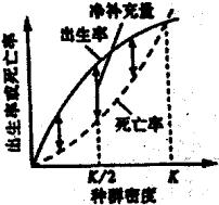 34.右图表示出生率、死亡率和种群密度的关系,据此分析得出的正确表述是