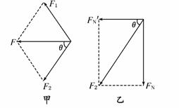 和竖直向下分解为FN′、FN,如图乙所示,则FN=F2sinθ,