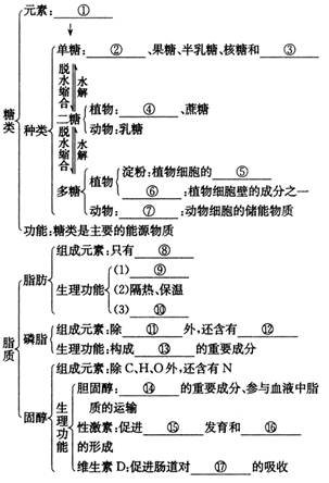 糖元 ⑧C、H、O ⑨储能物质 ⑩缓