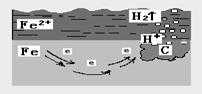 ⑵、析氢腐蚀:当钢铁处于酸性环境中