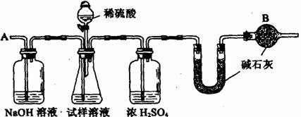 B、已知某纯碱试样中含有NaCl杂质,为测定试样中纯碱的质量分数,可用下图中的装置进行实验。