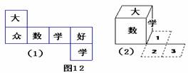 17. 如图12(1),是一个小正方体的侧面形展开图,小正方体从图13(2)所示的位置依次翻到第1格、第2格、第3格,这时小正方体朝上一面的字是 .