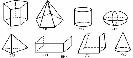 (2)图中③⑥⑦都是带曲面的几何体.图中③⑦至少有一个面是圆面.图中①④的六个面都是四边形.