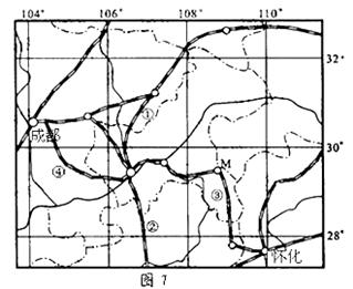 交通运输线的建设要受经济、社会、技术和自然等因素的影响和制约。交通运输业与人们的生产、生活息息相关。读图1和图7。回答1-2题: