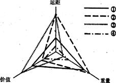 右图表示四类货物生产运输过程中的相关特征。读图回答以下2题。