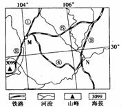 渝怀铁路(重庆一怀化)是中国实施西部大开发战略的标志性工程之一。读图回答下面两题。