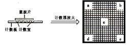 现观察到图中该计数室所示a、b、c、d、e5个中格80个小格内共有蓝藻n个,则上述水样中约有蓝藻 个/ml。