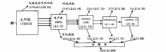 (4)假如下图是太湖水域生态系统在一年之内的能量流动情况资料(能流单位:kJ/m2.A)。请分析回答: