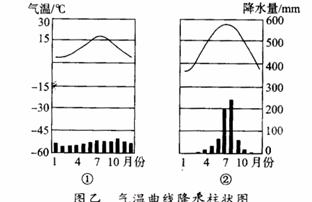 (3)图乙中①、②两气候资料图表示该地区的是__________。分析该气候对发展农业的影响。