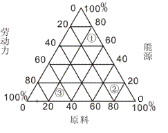 3.(九江市六所重点建设中学联考)右图表示某些工业部门对区位因素(仅考虑原料.能源.动力)的依赖程度,判断图中①②③代表工业部门分别可能是 ( )
