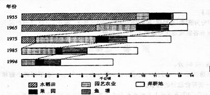 (江苏省常州市2009届高三期末质量调研)读香港农业土地利用变化图(下图),回答14-15题。