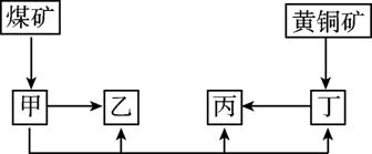 某地有大型黄铜矿和煤矿,计划在该地建①冶炼厂、②火电厂、③硫酸厂、④水泥厂。读生产联系图,回答12~13题。