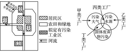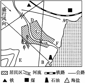 (1)请根据城市工业布置的基本原则和环境因素考虑,适当布局,将答案代号填入空格: