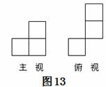 13. (嵊州)如图13,分别是由若干个完全相同的小正方体组成的一个几何体的主视图和俯视图,则组成这个几何体的小正方体的个数是 ( )