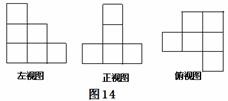 (眉山)在一仓库里堆放着若干个相同的正方体小货箱,仓库管理员将这堆货箱的三视图画了出来,如图14所示,则这堆正方体小货箱共有 (