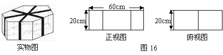 16. (芜湖)如图16,上下底面为全等的正六边形礼盒,其正视图与侧视图均由矩形构