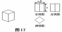 17. (安徽省)一个长方体的三视图如图17所示,若其俯视图为正方形,则这个长方体的高和底面边长分别为