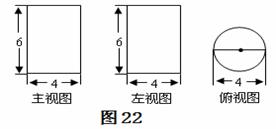 22.(宁夏)如图22,是一个几何体的三视图,根据图中标注的数据可求得这个几何体的体积为 ( )