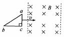 如图所示,两平行虚线间的区域内存在着匀强磁场,较小的三角形线圈 abc的 ac边与磁场边界平行,线圈匀速向右运动穿过磁场区域,如图所示,可以定性地表示线圈在穿过磁场的过程中感应电流随时间与磁场边界平时间变化的规律是