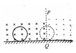 在光滑的水平地面上方,有两个磁感应强度大小均为B、方向相反的水平匀强磁场,如图所示PQ为两个磁场的边界,磁场范围足够大.一个半径为a,质量为m,电阻为R的金属圆环垂直磁场方向,以速度v从如图所示位置运动,当圆环运动到直径刚好与边界线PQ 重合时,圆环的速度为