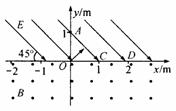 (15分)在如图所示的直角坐标中,x轴的上方有与x轴正方向成45°角的匀强电场,场强的大小为E=