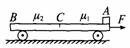 (17分)如图所示,平板车的质量为2m,车长为l,车右端A点有一质量为m 的小金属块(可视为质点),都静止在水平地面上.金属块与车间有摩擦,并且在 AC 段与 BC 段的动摩擦因数不同,车与地面的摩擦忽略.现给车施加一个向右的水平恒力 F ,使车开始向右运动,并且金属块在车上开始滑动,当金属块滑到车的中心 C 时,即撤去这个力,已知撤去力的瞬间金属块的速度为
