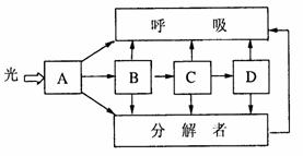 A.流经该生态系统的总能量就是A通 过光合作用固定的太阳能减去自身呼吸消耗的能量