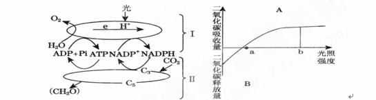 (3)B图中a点的含义是_________,b点后光合作用不再增强,限制因素是A图中的_________阶段。