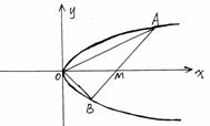 21. (12分)如图,线段AB经过x轴的正半轴上一点M(m, 0),两端点到x轴距离之积为2m,以x轴为对称轴,过A、O、B三点作抛物线.