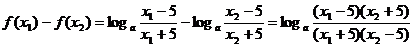 ∵ (x1-5)(x2+5)-(x1+5)(x2-5)=10(x1-x2)<0