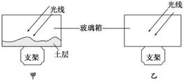 (如图),甲底部放一层土,中午同时把两个玻璃箱放在日光下,十五分钟后,同时