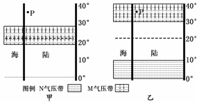 解析:根据甲图中的副热带高气压带位置偏南可知,甲代表北半球冬季;乙图中的
