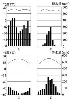 7.下列各图与上图中P点气候特征相匹配的是 ( )