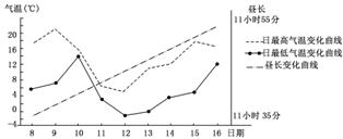 (2010·南昌一调)下图是济南市某时段气温和昼长变化示意图。读图回答12-14