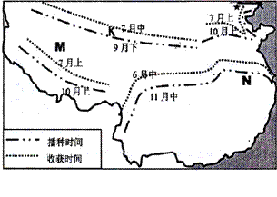 农业生产受自然条件影响非常明显,下图为我国某种主要农作物不同省份的农时图,其中时间为该农作物最迟的播种和收获时间,读图完成3-5。