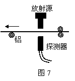 图7是工厂利用放射线自动控制铝板厚度的装置示意图。