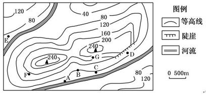 (1)经过一天的考察,按预定计划,需搭帐篷宿营。现有A、B、C、D四个宿营地点(见上图)可供选择,依据所学知识,你认为选择 地宿营最合适,其理由是 。(3分)