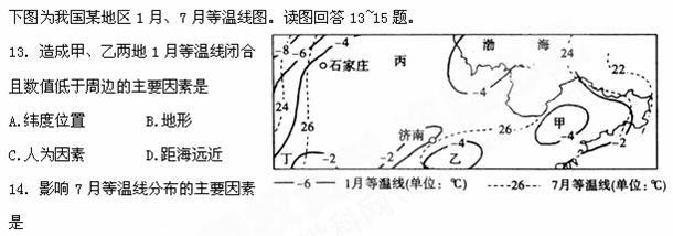 C.人为因素、海陆差异 D.纬度位置、人为因素