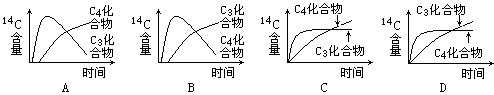 17.在光照下,供给玉米离体叶片少量的14CO2,随着光合作用时间的延续,在光合作用固定CO2形成的C3化合物和C4化合物中,14C含量变化示意图正确的是